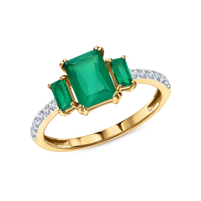 Золотое кольцо с фианитами и агатами зелёными