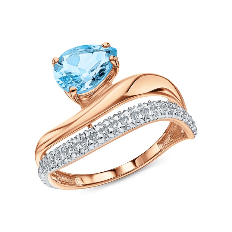Кольцо с 1 топазом скай природным, 1.3 карат; Розовое золото 585 пробы.