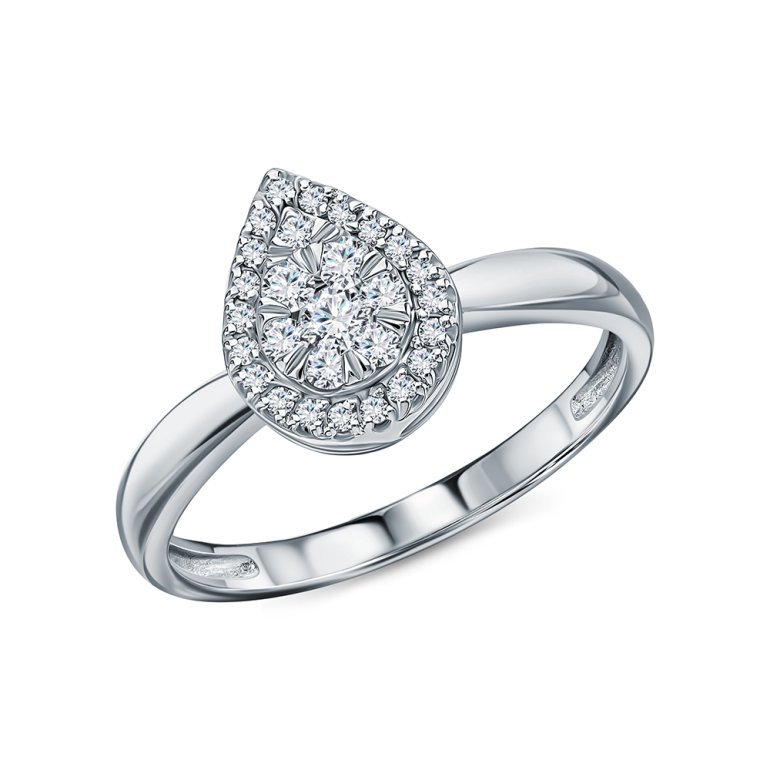 Кольцо с 1 бриллиантом природным, 0.045 карат, огранка круг 57 граней, цвет 3, чистота 6, тип огранки А; 2 бриллиантами природными, 0.043 карат, огранка круг 57 граней, цвет 3, чистота 6, тип огранки А; 4 бриллиантами природными, 0.053 карат, огранка круг 57 граней, цвет 3, чистота 6, тип огранки А; 1 бриллиантом природным, 0.009 карат, огранка круг 57 граней, цвет 3, чистота 6, тип огранки А; 20 бриллиантами природными, 0.069 карат, огранка круг 57 граней, цвет 2, чистота 2, тип огранки А; Белое золото 585 пробы.