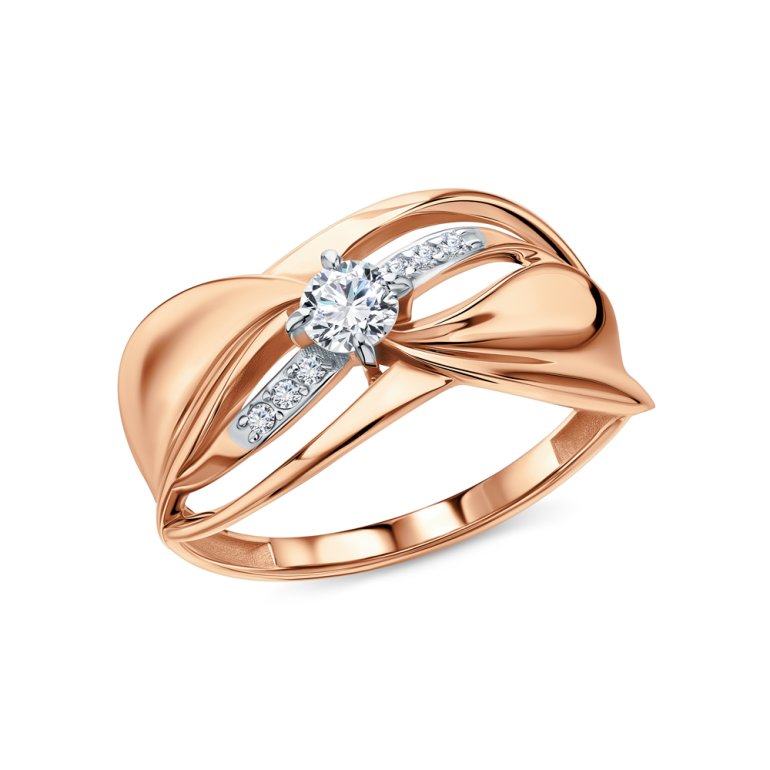 Кольцо, вставка: фианитом бесцветным; Розовое золото 585 пробы.