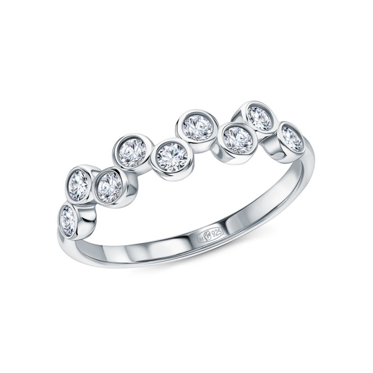 Кольцо с 9 бриллиантами выращенными, 0.315 карат, огранка круг 57 граней, цвет 3, чистота 5; Серебро 925 пробы.