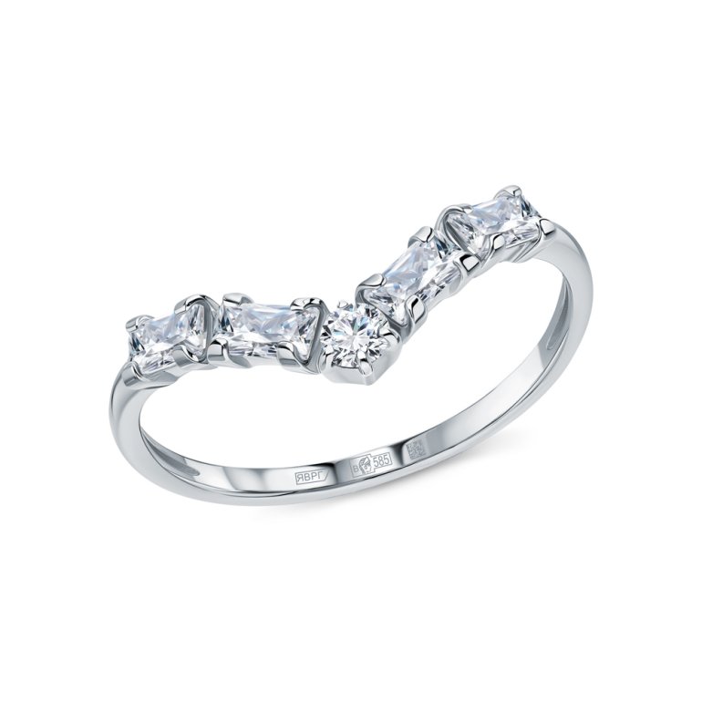 Кольцо, вставка: фианитом бесцветным;  фианитом бесцветным; Белое золото 585 пробы.