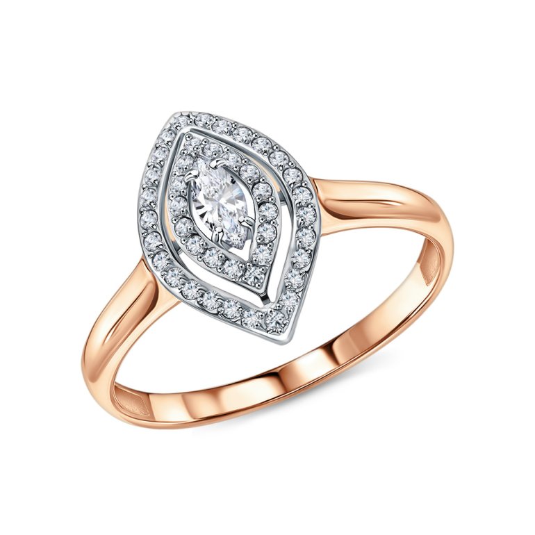 Кольцо, вставка: фианитом бесцветным; Розовое золото 585 пробы.