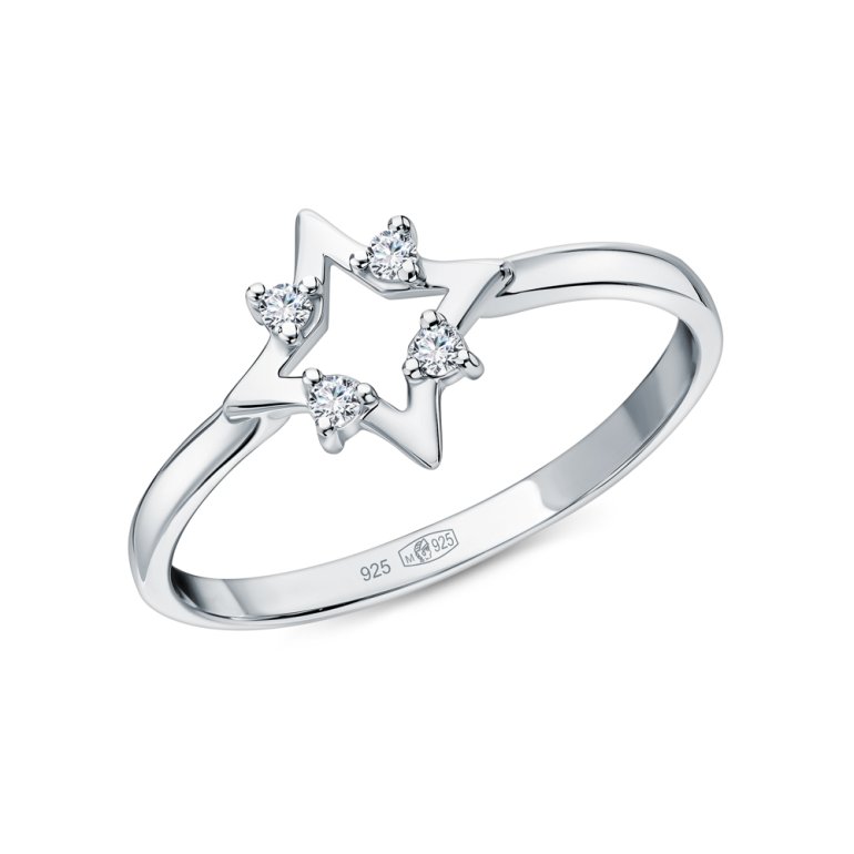 Кольцо с 4 бриллиантами выращенными, 0.06 карат, огранка круг 57 граней, цвет 3, чистота 5; Серебро 925 пробы.