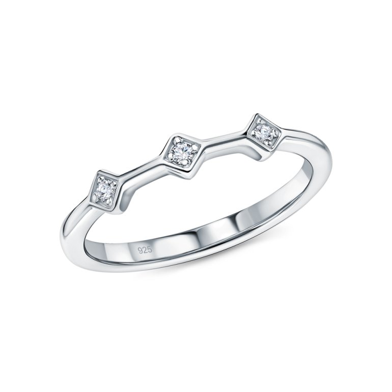 Кольцо с 3 бриллиантами выращенными, 0.045 карат, огранка круг 57 граней, цвет 3, чистота 5; Серебро 925 пробы.
