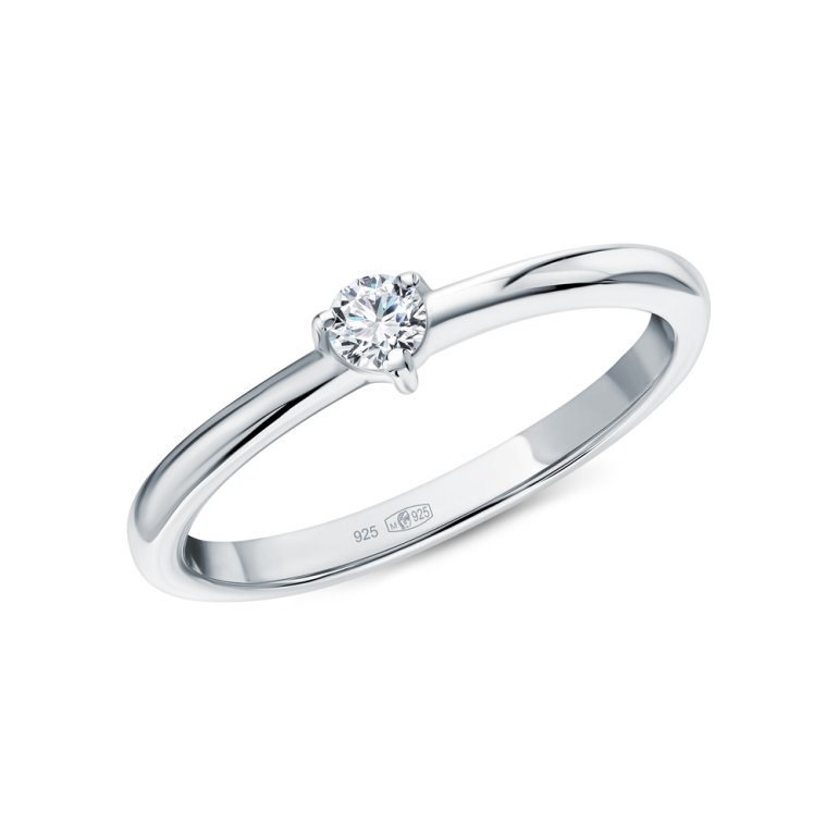 Кольцо с 1 бриллиантом выращенным, 0.11 карат, огранка круг 57 граней, цвет 3, чистота 5; Серебро 925 пробы.