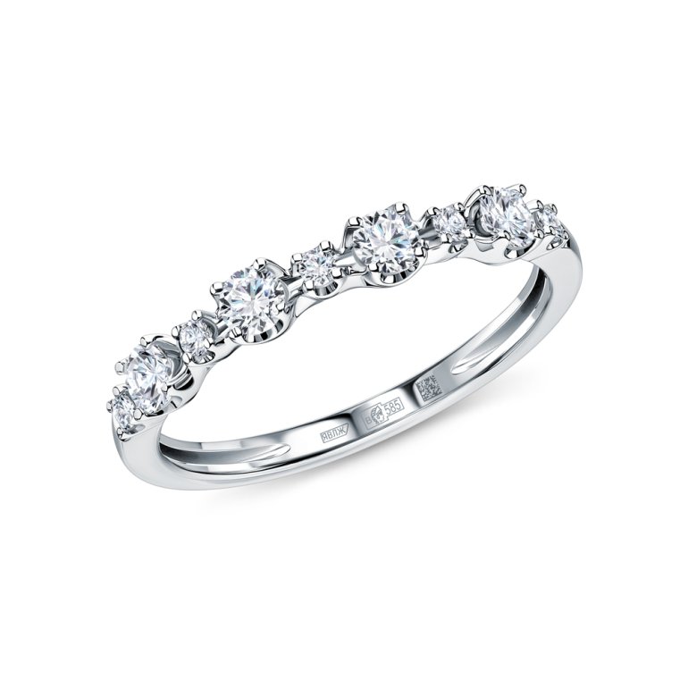 Кольцо с 4 бриллиантами выращенными, 0.333 карат, огранка круг 57 граней, цвет 3, чистота 5, тип огранки В; 5 бриллиантами выращенными, 0.072 карат, огранка круг 57 граней, цвет 3, чистота 5, тип огранки В; Белое золото 585 пробы.