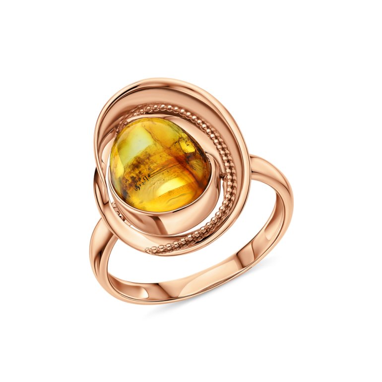Кольцо с 1 янтарем коричневым, 1.055 карат; Розовое золото 585 пробы.