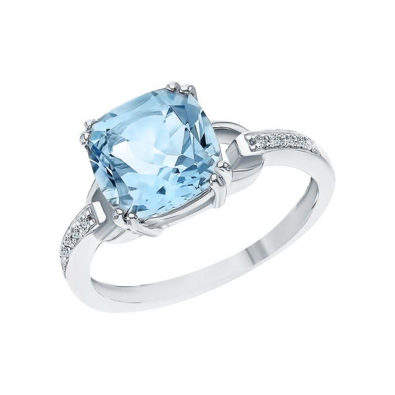 Кольцо с 10 бриллиантами природными, 0.021 карат, огранка круг 17 граней, цвет 2, чистота 2, тип огранки Б; 1 топазом, 2.606 карат; Белое золото 585 пробы.