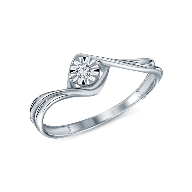 Кольцо с 1 бриллиантом природным, 0.017 карат, огранка круг 57 граней, цвет 3, чистота 5, тип огранки А; Белое золото 585 пробы.