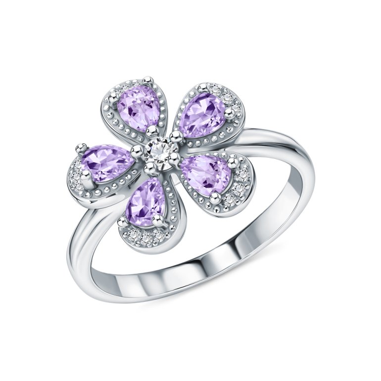 Кольцо, вставка: сиреневым фианитом;  фианитом бесцветным; Серебро 925 пробы.