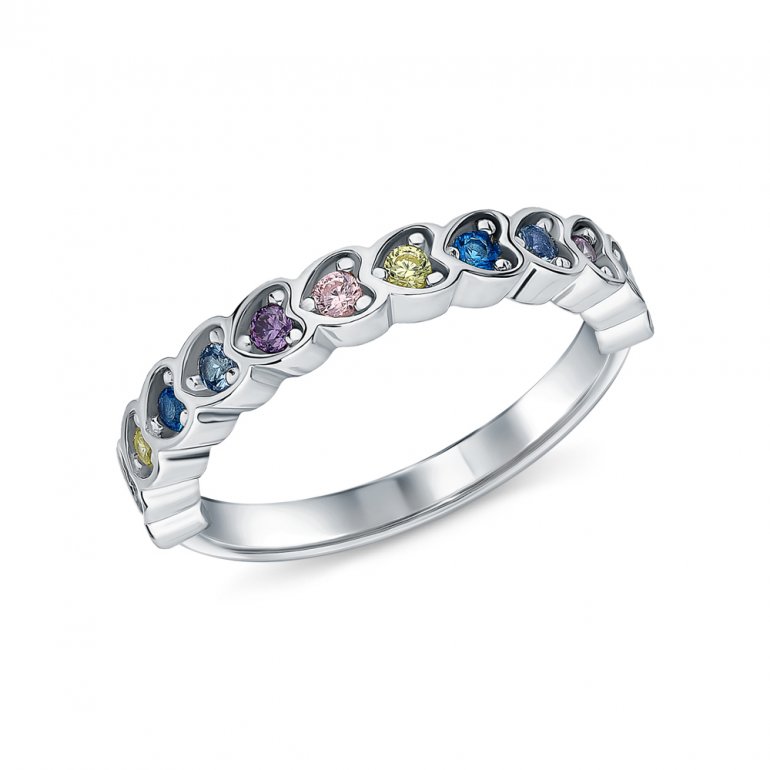 Серебряное кольцо с фианитами и синтетической шпинелью