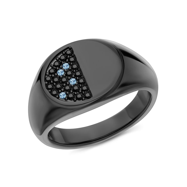 Кольцо, вставка: фианитом бесцветным;  черным фианитом;  Сталь; Сталь