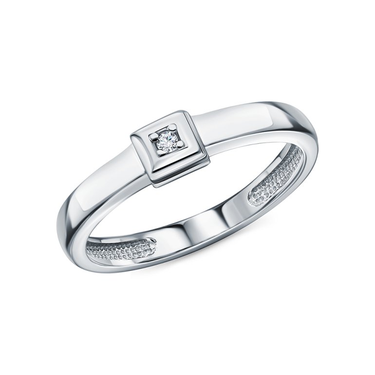 Кольцо с 1 бриллиантом природным, 0.014 карат, огранка круг 57 граней, цвет 4, чистота 7, тип огранки А; Серебро 925 пробы.