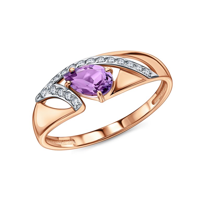 Золотое кольцо с фианитами и аметистами природными 1724508 1 1 1* Кольца SUNLIGHT | V4.Ru: Маркетплейс