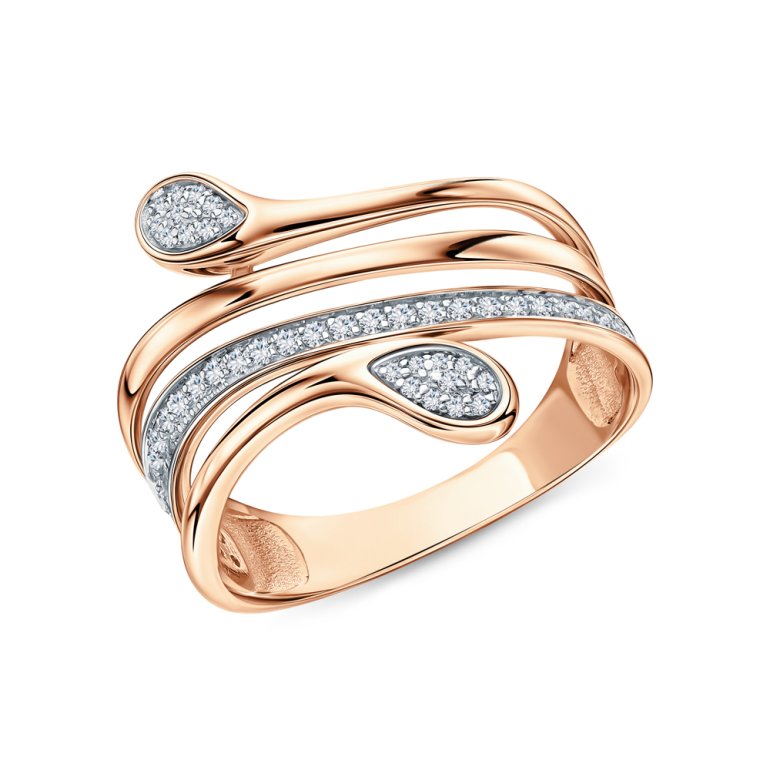 Кольцо с 8 бриллиантами природными, 0.055 карат, огранка круг 57 граней, цвет 3, чистота 6; 51 бриллиантом природным, 0.195 карат, огранка круг 17 граней, цвет 2, чистота 2; Розовое золото 585 пробы.