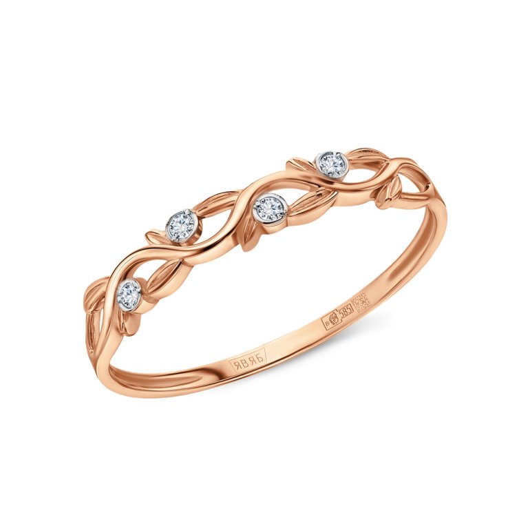 Кольцо, вставка: фианитом бесцветным; Розовое золото 585 пробы.