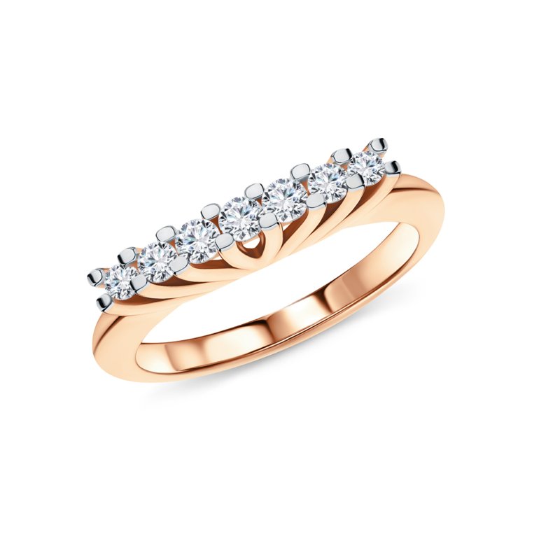 Кольцо с 3 бриллиантами природными, 0.155 карат, огранка круг 57 граней, цвет 3, чистота 6, тип огранки А; 4 бриллиантами природными, 0.128 карат, огранка круг 57 граней, цвет 3, чистота 6, тип огранки А; Розовое золото 585 пробы.