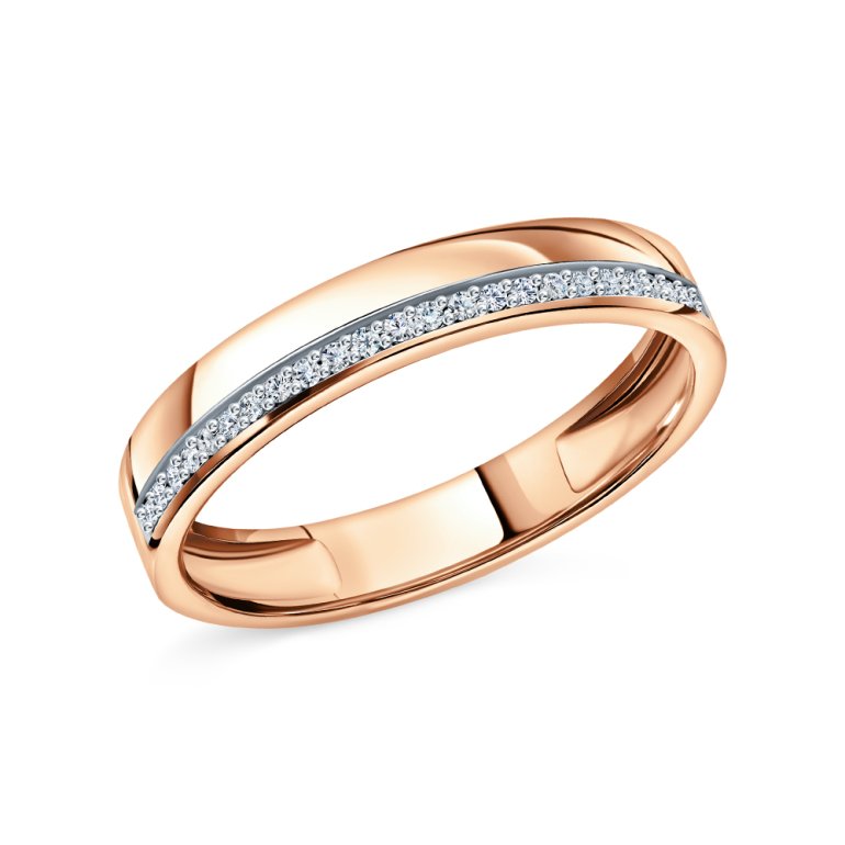 Кольцо с 23 бриллиантами природными, 0.048 карат, огранка круг 17 граней, цвет 2, чистота 2, тип огранки А; Розовое золото 585 пробы.