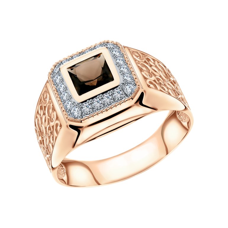 Золотое кольцо с фианитами и кварцем дымчатым КМ-01/4_зс* Кольца SUNLIGHT | V4.Ru: Маркетплейс