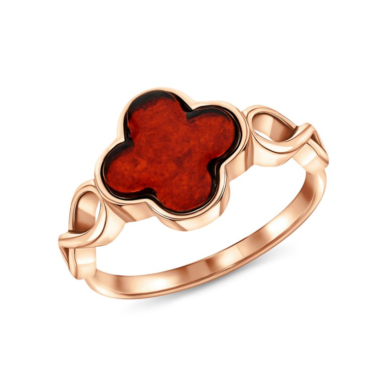 Кольцо с 1 янтарем коричневым природным; Серебро 925 пробы.