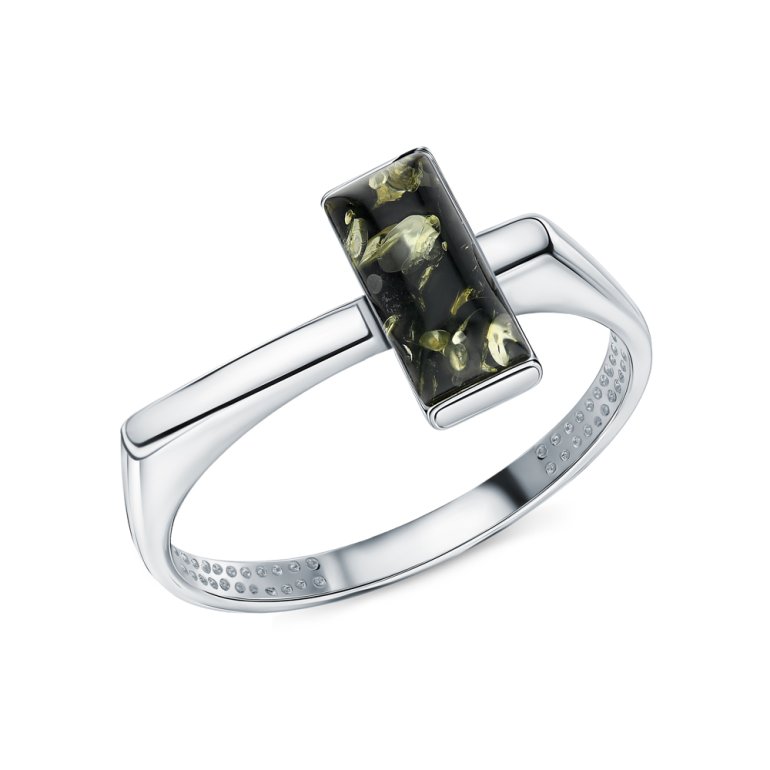 Кольцо с 1 янтарем зеленым природным; Серебро 925 пробы.