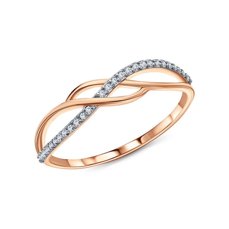 Кольцо с 27 бриллиантами природными, 0.07 карат, огранка круг 17 граней, цвет 2, чистота 2, тип огранки А; Розовое золото 375 пробы.