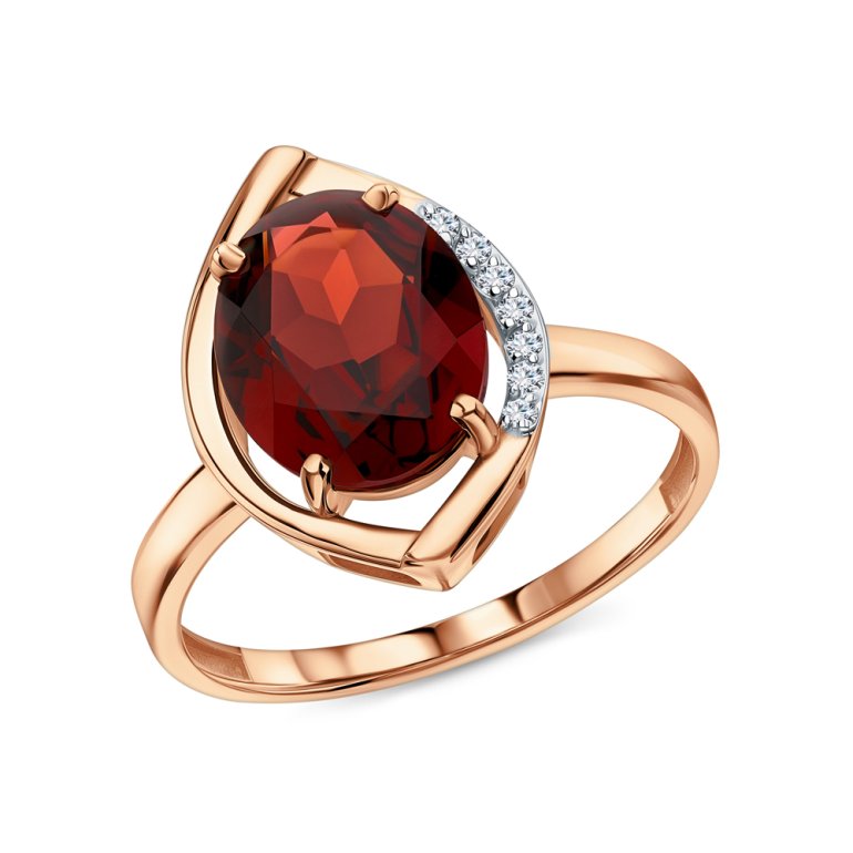 Кольцо с 7 бриллиантами природными, 0.031 карат, огранка круг 17 граней, цвет 2, чистота 2; 1 гранатом природным, 2.715 карат; Розовое золото 585 пробы.