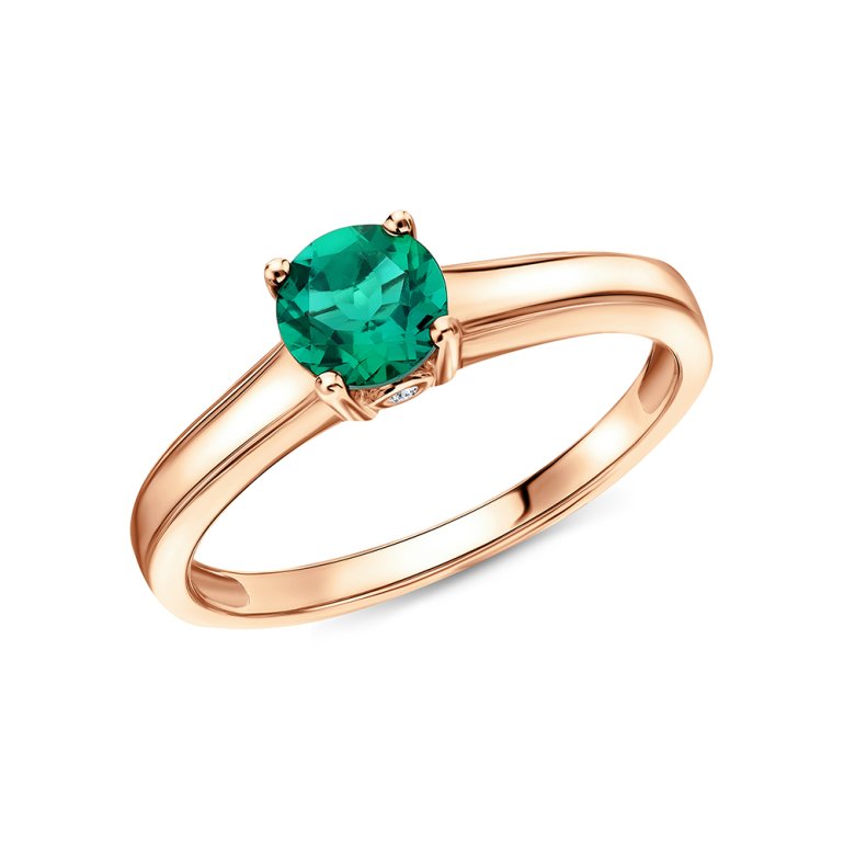 Кольцо с 2 бриллиантами природными, 0.009 карат, огранка круг 17 граней, цвет 2, чистота 2; 1 гидротермальным изумрудом, 0.46 карат; Розовое золото 585 пробы.