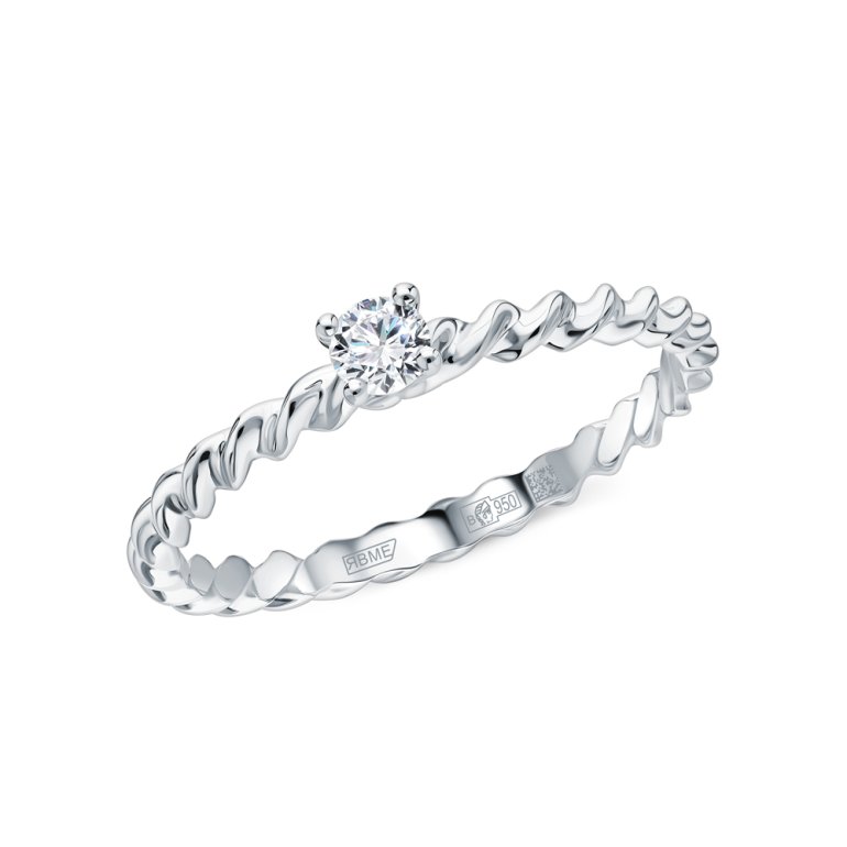 Кольцо с 1 бриллиантом природным, 0.108 карат, огранка круг 57 граней, цвет 3, чистота 6, тип огранки А; Платина 950 пробы.