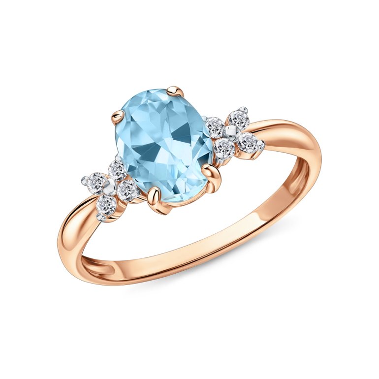 Кольцо с 1 топазом скай природным, 1.36 карат;  фианитом бесцветным; Розовое золото 585 пробы.