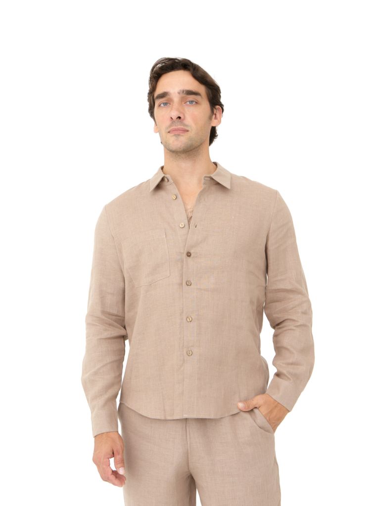 Льняная рубашка в теплых тонах мокко — идеальный баланс летней свежести и утонченного стиля. Созданная из 100% натурального льна, она обладает уникальной способностью пропускать воздух, даря желанную прохладу в знойные дни. Характерная благородная фактура ткани с естественными неровностями придает образу особую глубину и природную элегантность.Классический крой с отложным воротником и длинными рукавами создает универсальный силуэт, который подчеркивает мужественность, сохраняя при этом полную свободу движений. Теплый коричневый оттенок с мягким матовым отливом становится идеальной основой для летних сочетаний — от повседневных образов с джинсами до более формальных луков со светлыми брюками. Детали в виде аккуратной планки и пуговиц из натуральных материалов добавляют образу завершенность и стиль.Натуральный лен — выбор тех, кто ценит экологичность и комфорт. Этот удивительный материал с каждой стиркой становится только мягче, сохраняя при этом свою форму и благородный внешний вид. Добавьте в гардероб эту льняную рубашку — пусть ее природная свежесть и универсальность вдохновляют вас на создание стильных летних образов.