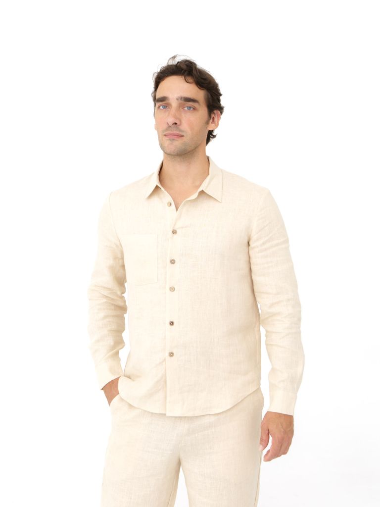 Элегантная мужская рубашка из 100% натурального льна в благородном молочном оттенке – идеальный выбор для теплого сезона. Премиальный льняной материал обладает исключительной способностью обеспечивать комфорт даже в самые жаркие дни благодаря своей уникальной структуре, которая эффективно отводит влагу и позволяет коже дышать. Классический крой этой модели с отложным воротником и застежкой на пуговицы по всей длине создает элегантный и лаконичный образ, подходящий как для деловых встреч, так и для повседневных выходов.Длинные рукава с манжетами на пуговицах предоставляют возможность варьировать стиль – их можно носить как свободно опущенными, так и элегантно подкатанными. Универсальный молочный цвет делает рубашку исключительно многогранной в плане сочетаемости с другими элементами гардероба – она одинаково хорошо смотрится с джинсами, льняными брюками или классическими чиносами.Льняное полотно отличается не только комфортом, но и высокой прочностью и долговечностью, что делает эту рубашку отличной инвестицией в гардероб. С каждой стиркой лен становится только мягче и приятнее на ощупь, сохраняя при этом свою форму и элегантный вид. Натуральные антибактериальные свойства льна особенно ценны в летний период, помогая сохранять свежесть на протяжении всего дня.