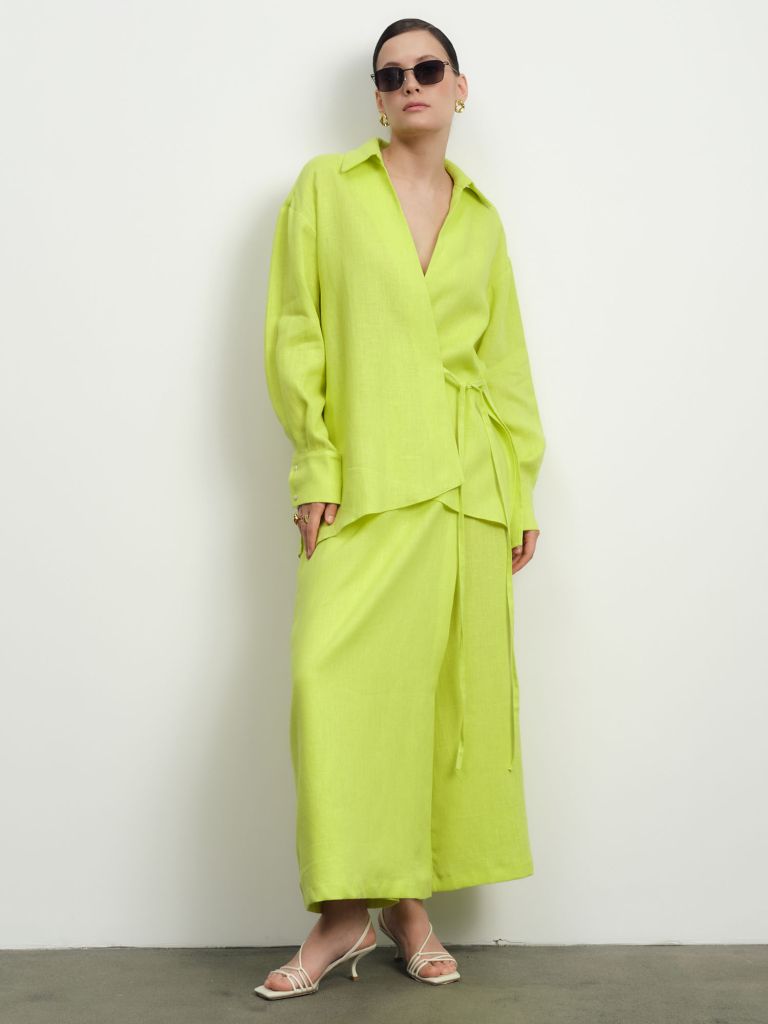 Рубашка льняная лайм – свежесть лета в каждой деталиЛьняная рубашка насыщенного лаймового оттенка – идеальный выбор для жарких дней. Свободный крой и натуральный материал обеспечивают комфорт, а сочный цвет добавляет образу энергии и стиля.С чем носить:• С белыми льняными брюками• В паре с джинсовыми шортами• Как лёгкий пиджак к сарафану• С кремовой юбкой-мидиЯркий лаймовый акцент освежит любой гардероб и поднимет настроение даже в пасмурный день.