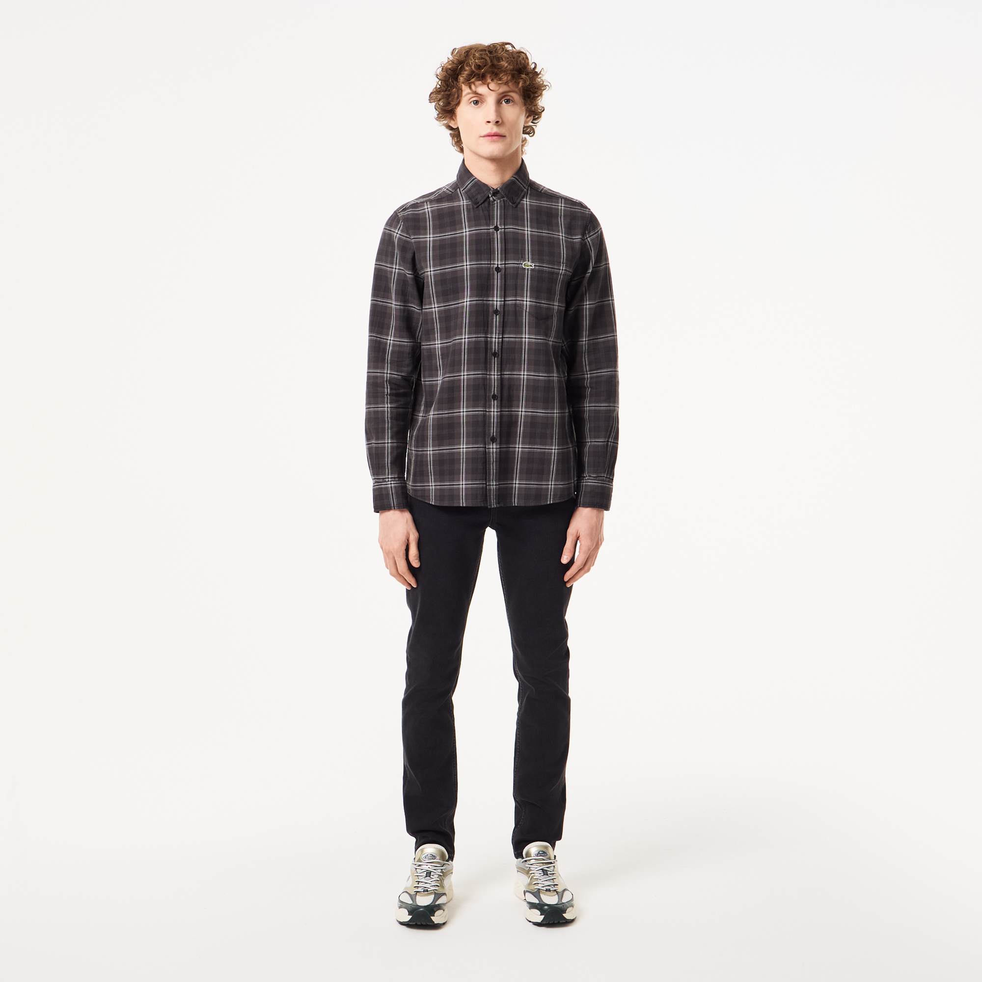 воротник button-down\В клетку\Накладной карман на груди\Логотип на груди\Материал: 100% хлопок\Рост модели 187 см, размер одежды 4-M