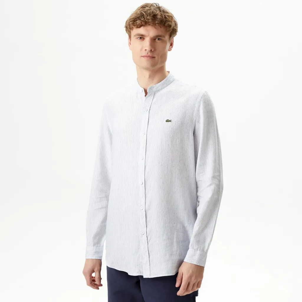 Воротник "Мандарин"\Легкий и дышащий материал\Логотип на груди\Материал: верх-54% лен 46% тенсель\Рост модели 187 см, размер одежды 41