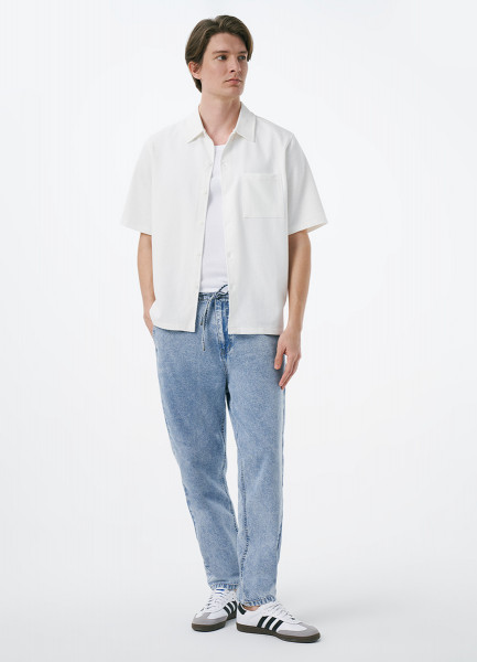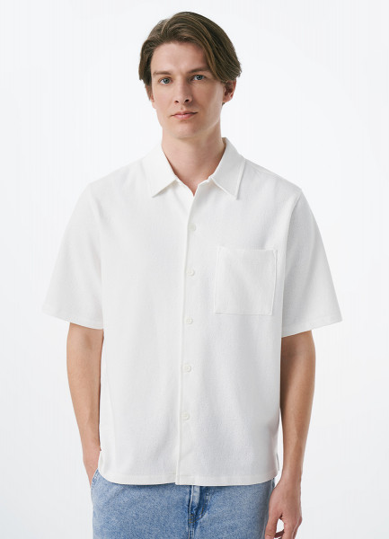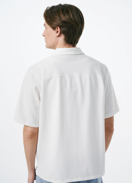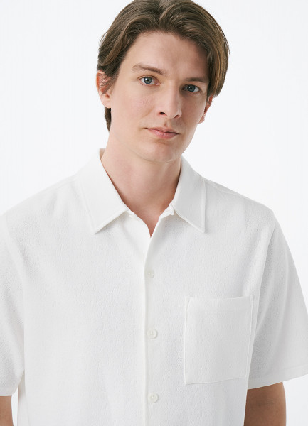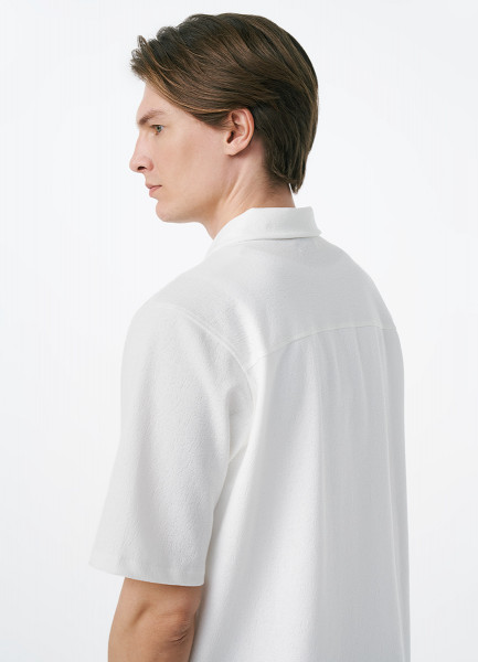 Трикотажная рубашка из фактурного полотна с коротким рукавом, Белый