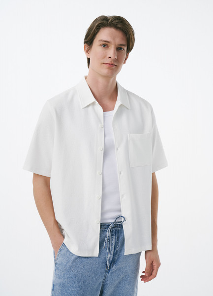Трикотажная рубашка из фактурного полотна с коротким рукавом, Белый