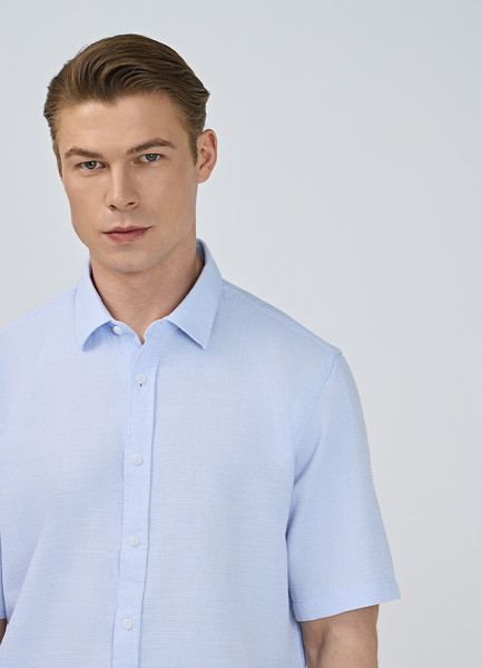 Рубашка из структурной ткани, Голубой