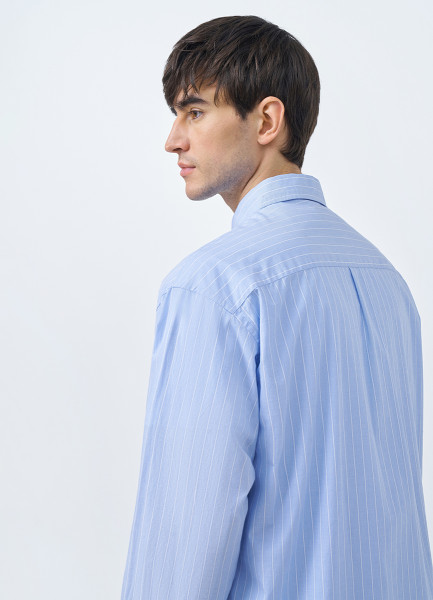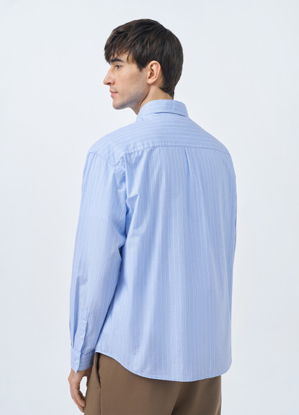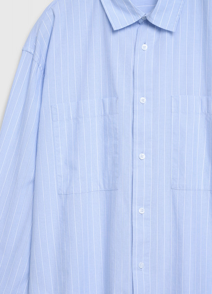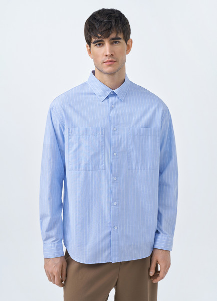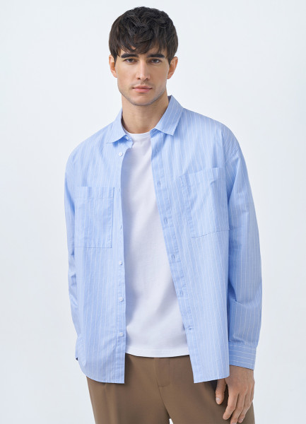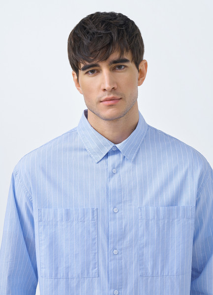 Рубашка в полоску с карманами, Голубой