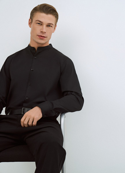 Рубашка c воротником мао, Черный