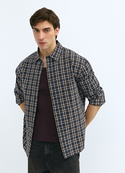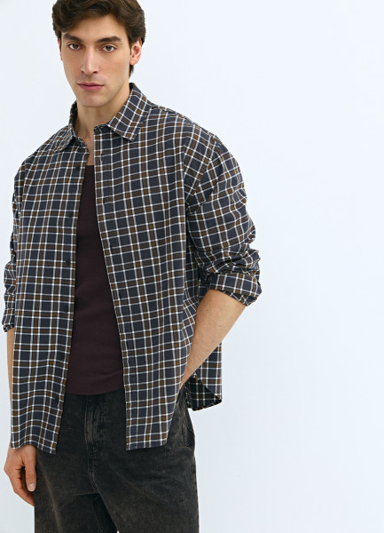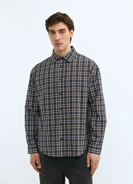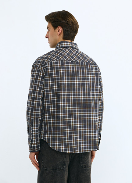 Рубашка из хлопка в клетку, Серый