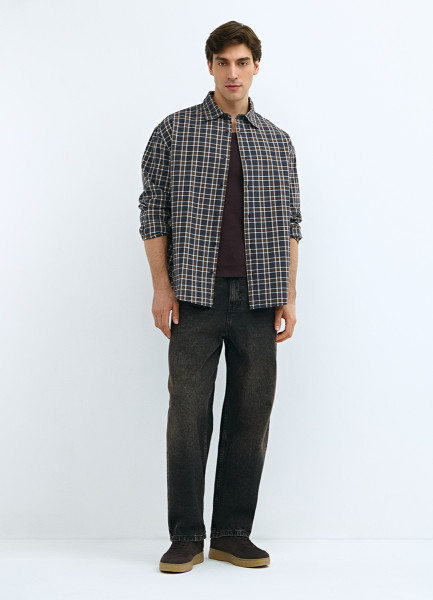 Рубашка в клетку из хлопка, Черный