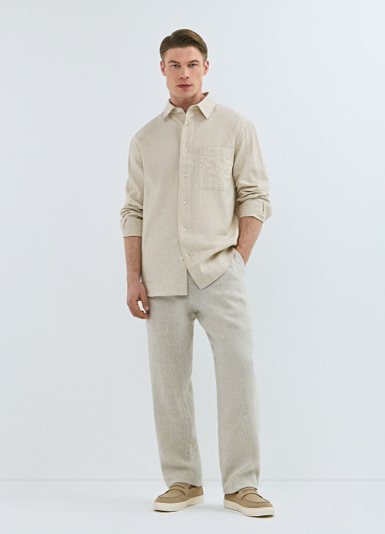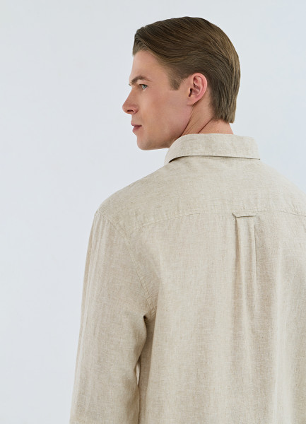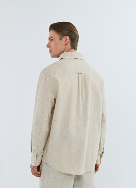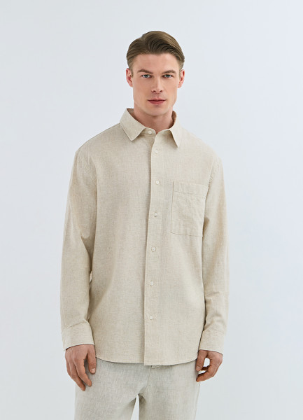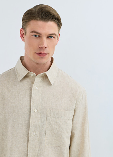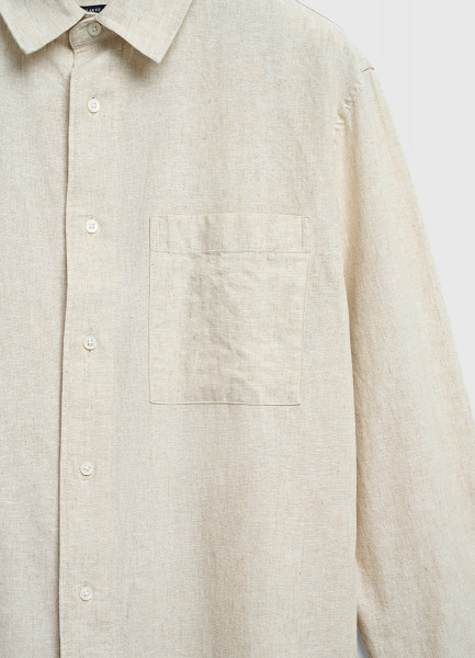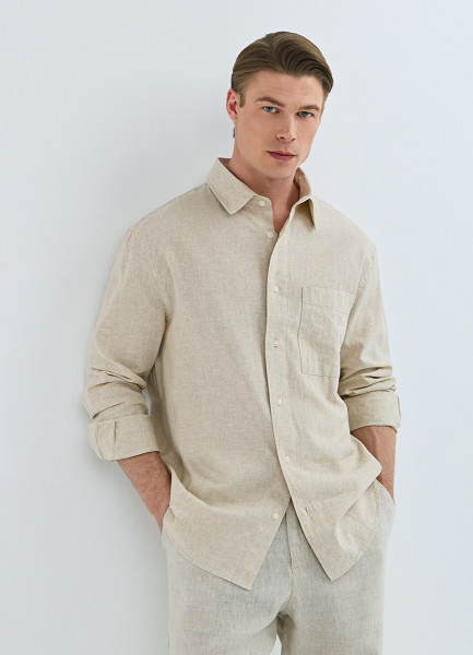 Рубашка изо льна и хлопка с карманом, Бежевый