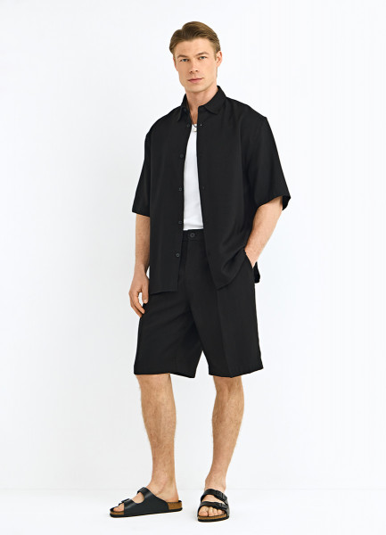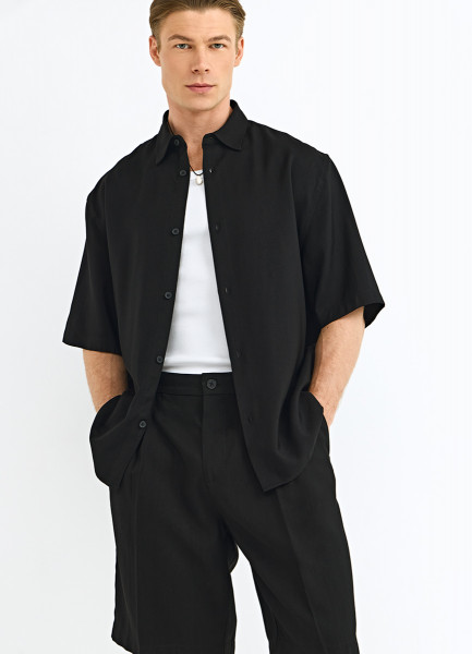 Рубашка из вискозы с коротким рукавом, Черный