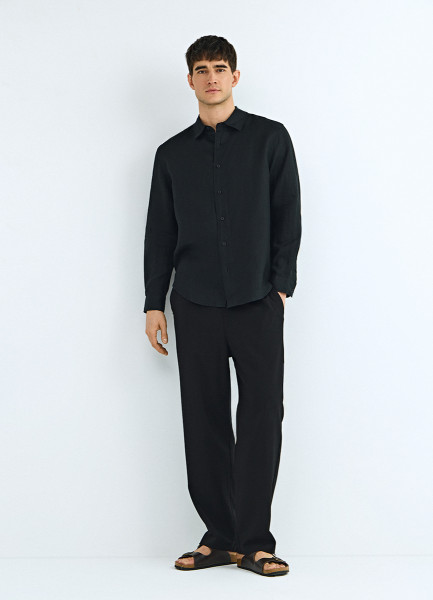 Рубашка изо льна и хлопка с карманом, Бежевый