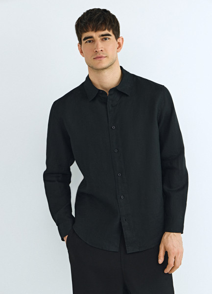 Рубашка изо льна и хлопка с карманом, Зеленый
