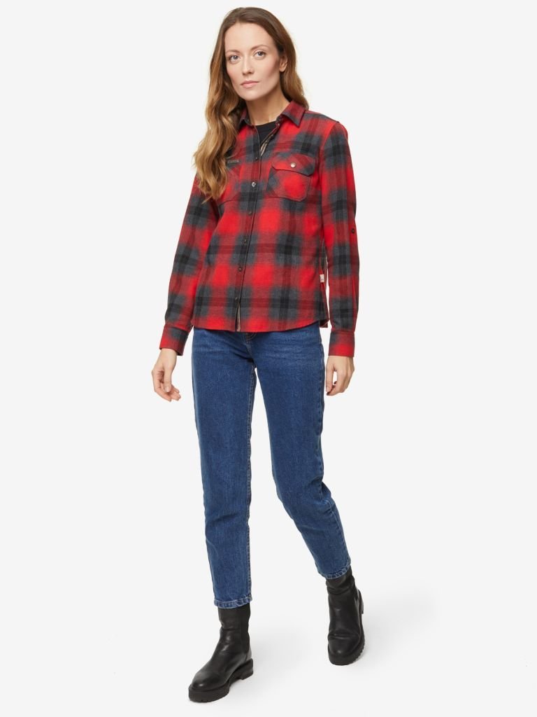 Теплая рубашка женская из смесовой ткани в клетку с ворсом внутри