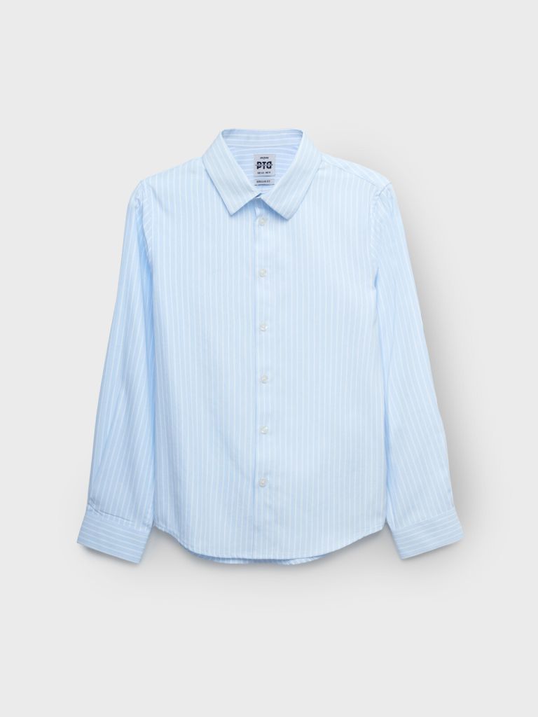Классическая голубая рубашка в полоску для мальчика подростка на 1 сентября