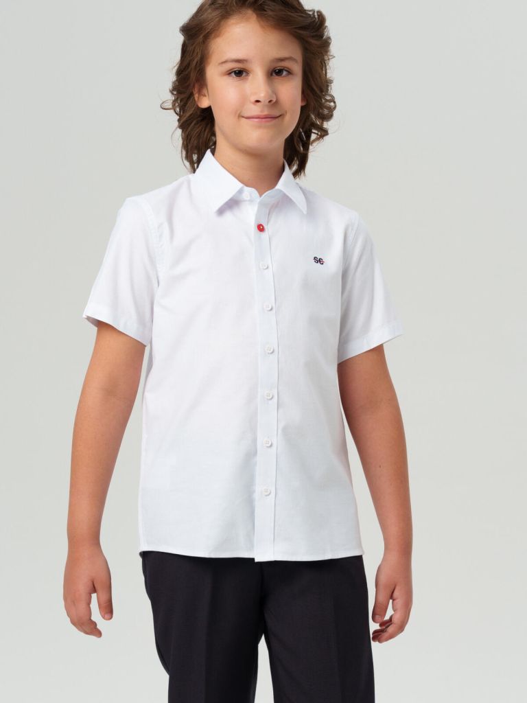 Школьная белая рубашка с коротким рукавом от бренда PlayToday — стильная база для мальчиков-подростков на каждый учебный день.